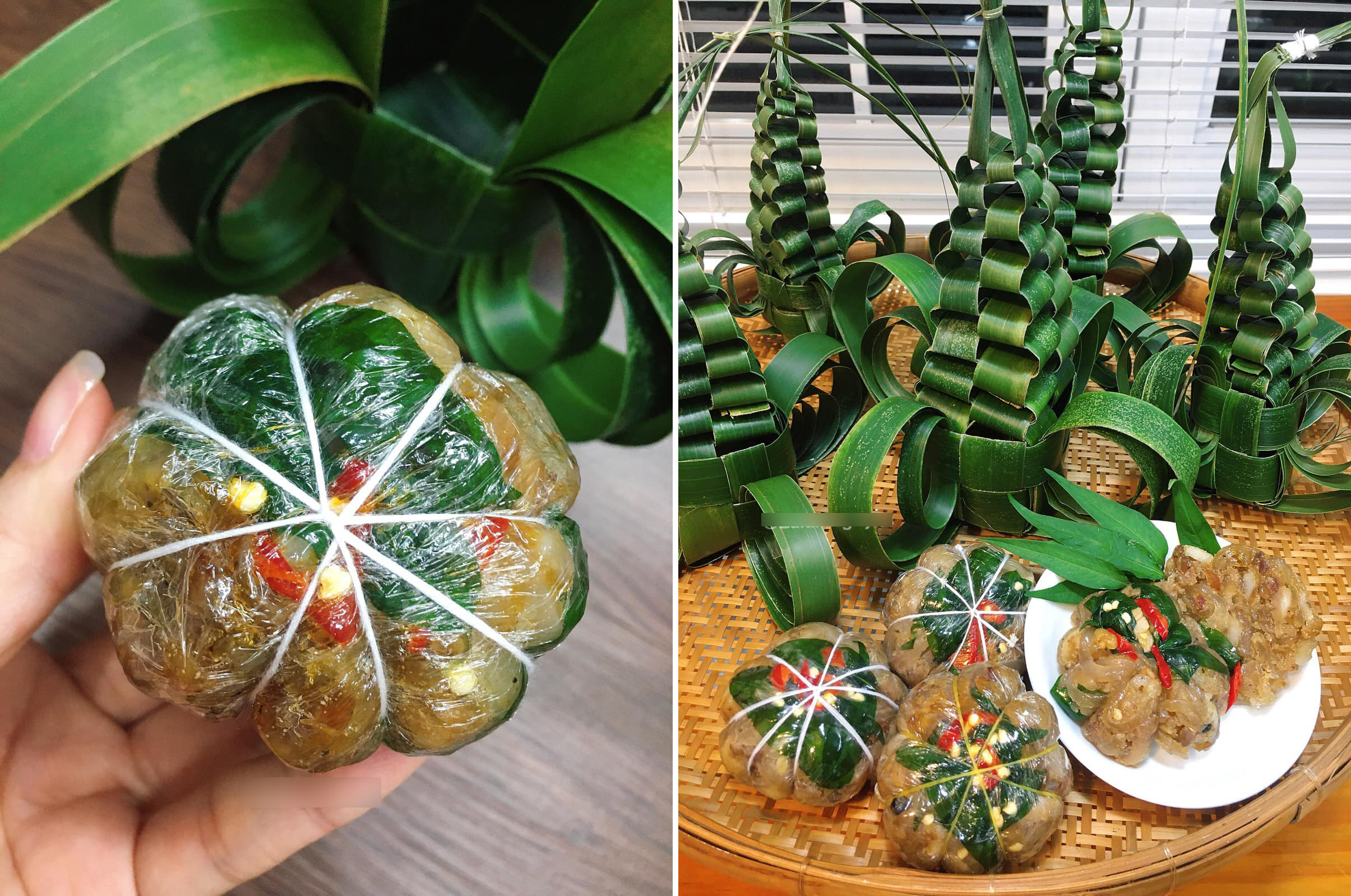 Tôi nhìn mà không tin nổi. Làm sao một món ăn dân dã lại có thể được đan thắt cầu kỳ đến vậy? Mỗi sợi lá được bện đều tay, ôm trọn phần nhân bên trong – khiến tôi vừa tò mò vừa… sợ làm hỏng.