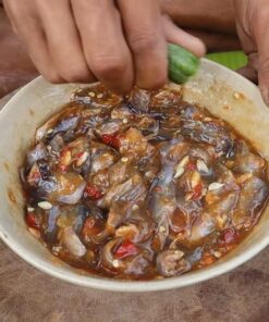 Trộn mắm với tỏi ớt, khóm (hoặc chanh, đường) Ăn kèm rau sống.