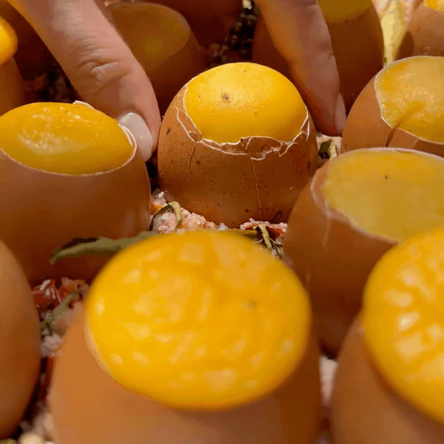 Phần trứng ấy được rót trở lại vỏ, không đầy quá, như chừa chỗ cho trứng “nở”. Sau đó đem hấp sơ, chỉ vừa đủ để trứng đứng lại, chưa chín hẳn. Công đoạn này không ai thúc nhanh, vì ai cũng biết: vội là trứng dễ khô.