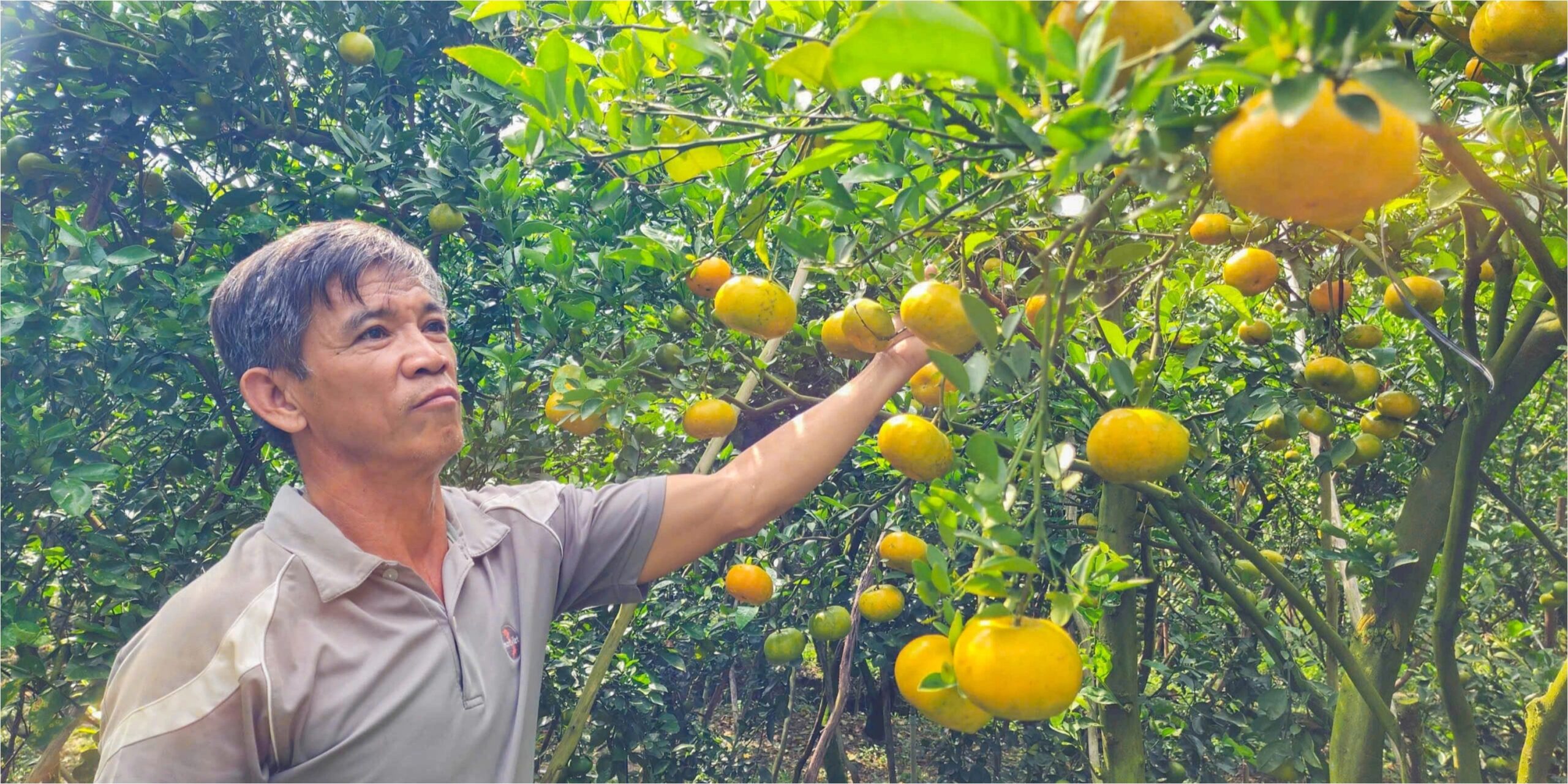 Không chỉ những nhà vườn lâu năm, nhiều hộ trồng quýt khác cũng bắt đầu chuyển hướng. Ông Phạm Phú Cường, chủ một vườn quýt tại ấp Long Hưng 1, lần đầu tiên mở cửa đón khách tham quan sau hàng chục năm chỉ trồng quýt để bán Tết.